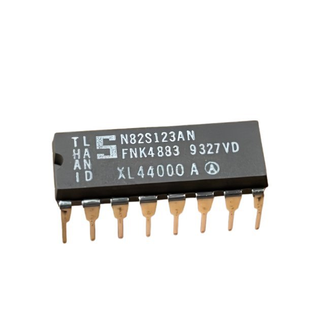 - Product Description – Signetics N82S123AN 256-bit TTL Bipolar Programmable Read-Only Memory IC.