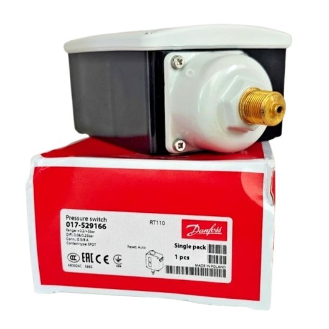 - Product Description – Danfoss 017-529166 RT110 Model Industrial Pressure Switch.